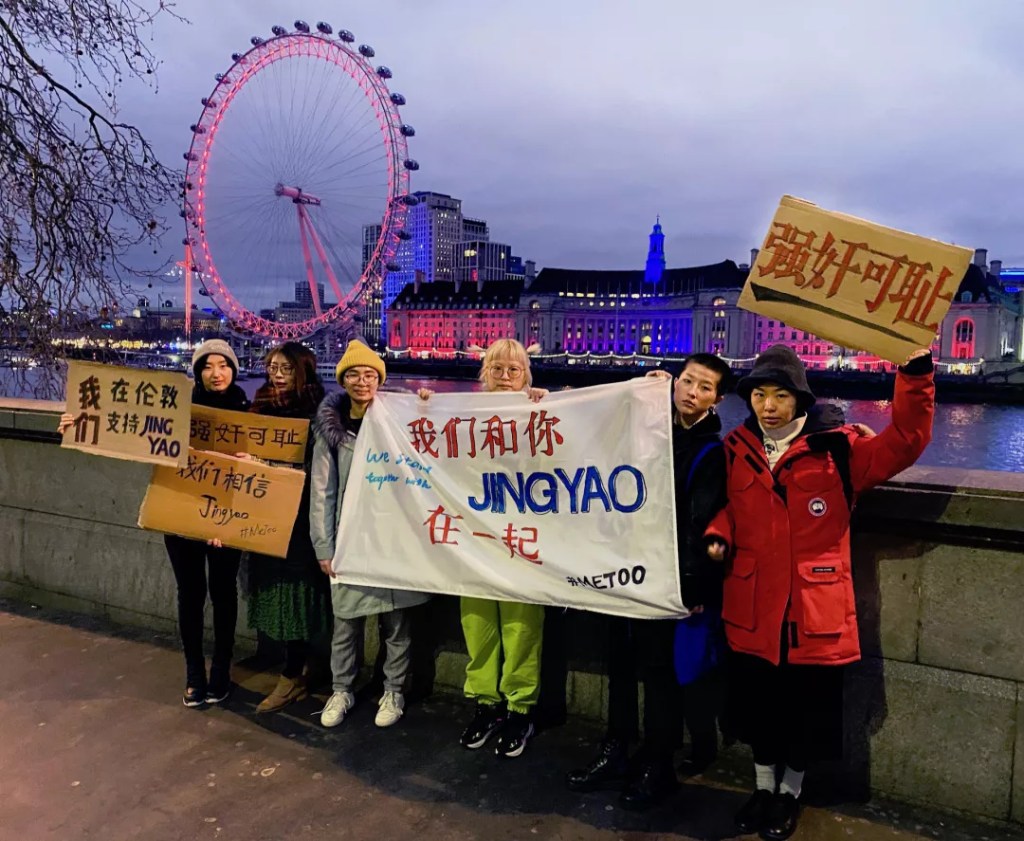“在伦敦的中国人还是挺多的,尤其是我们举着标语走到中国城的时候,大家还会停下来几秒钟看我们几眼,也有路人拍照。我那个时候就想,诶呀如果能听到ta们脑子里在想什么就好了。看到Jingyao说可能只有10%的人支持她,感觉挺难过的。可能更多的路人也只是好奇,并不觉得远在天边的一个小姑娘跟自己有什么关系。但是我觉得,在这个舆论吃人的时代,遥远的情感支持是能稍稍帮忙抵御一点风凉话的。整个社会都站在男性和权力一方的时候,Jingyao对抗的不仅仅是那个加害人本人,Jingyao在做的事也不仅仅在帮她自己。我们都是这个吃人结构的一部分。有人说女权是选边站,搞对立,可现在不选边互相支持的话再往后还有得选吗?”
